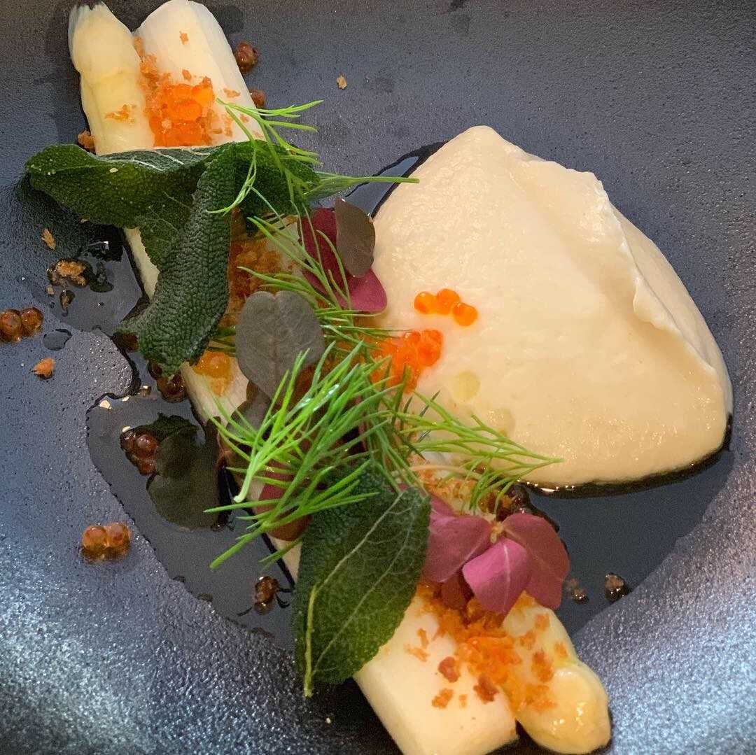 Vit sparris med svartrotskräm och laxrom