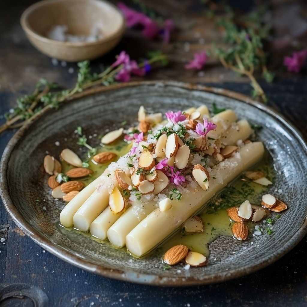 Vit sparris med citron- och örtvinägrett & rostade mandlar