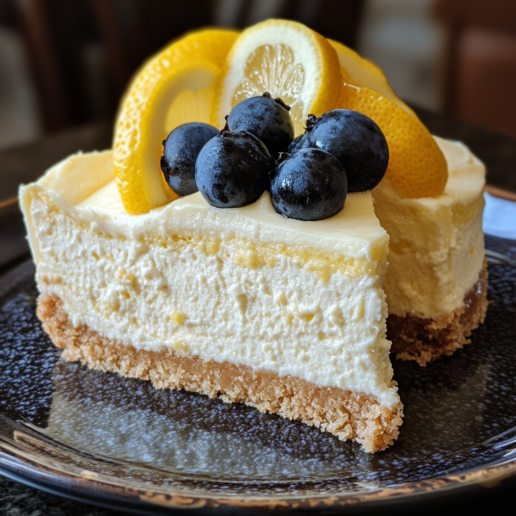 Citroncheesecake utan socker på mandelbotten med blåbär