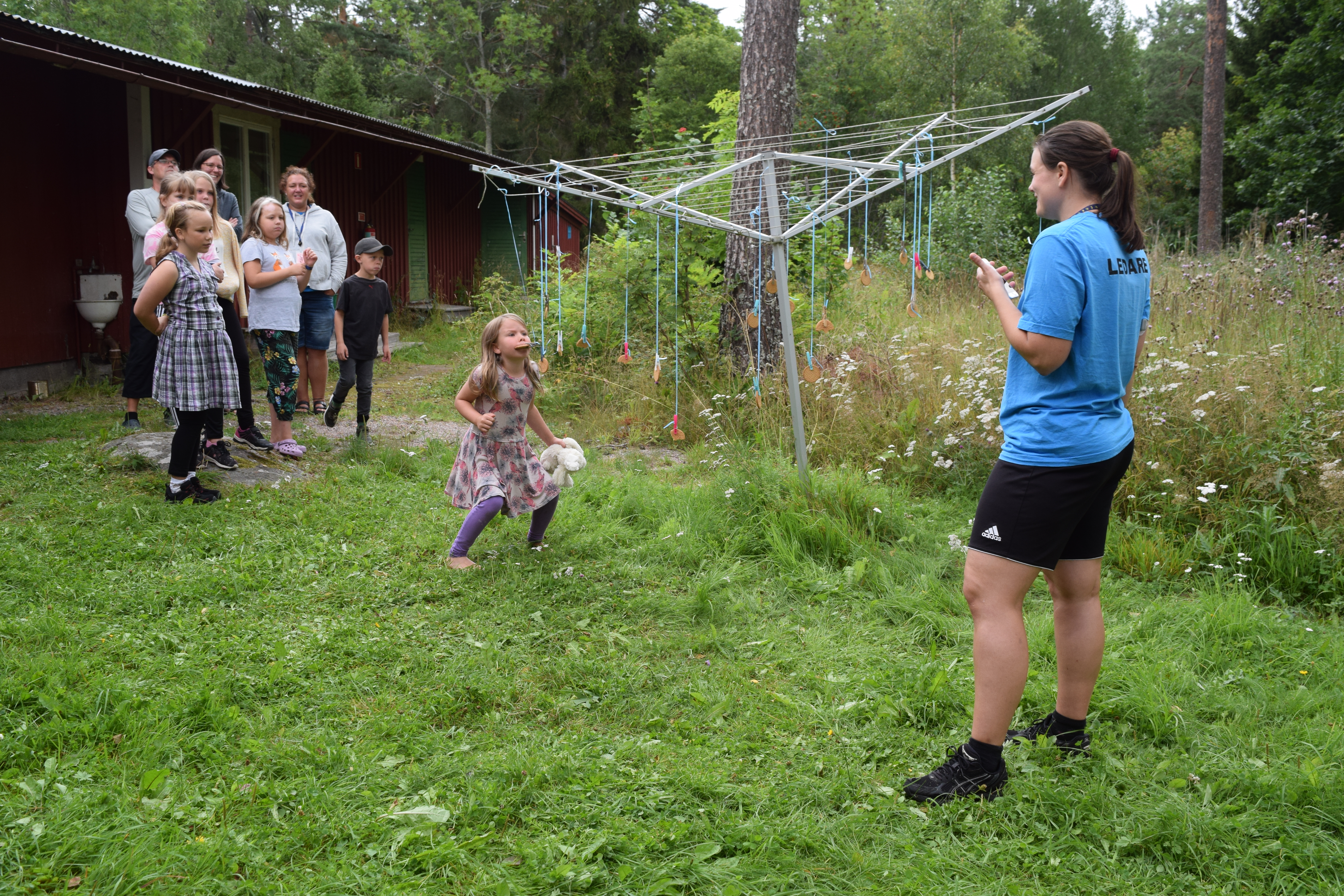 När jag anländer till Ängskärs lägergård i Norra Uppland möts jag av glada barn som är i full fart att utföra 5-kamp. De är uppdelade i olika grupper på stationer med olika aktiviteter som att äta upphängda kex utan att röra med händerna, fylla vatten i hinkar på avstånd med hjälp av vattenpistoler, trä ett snöre genom kläderna, samt andra aktiviteter, där även föräldrar får vara med. Här har barnen och föräldrarna tid att umgås och dela med sig av sina erfarenheter tillsammans med Lotta och Helena samt med ett flertal ledare.
